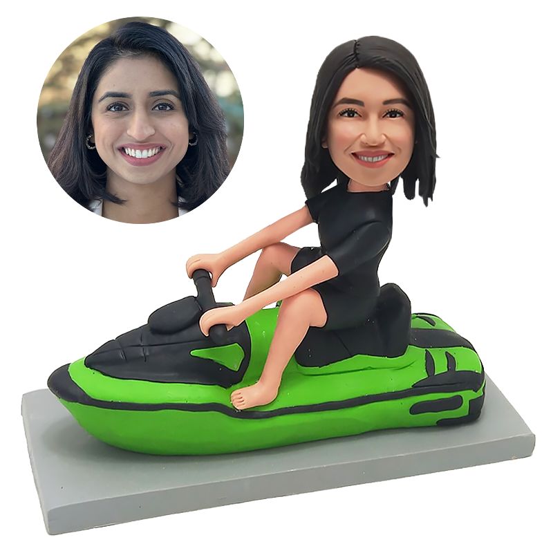 custom jet ski bobblehead figure lady riding a motorboat