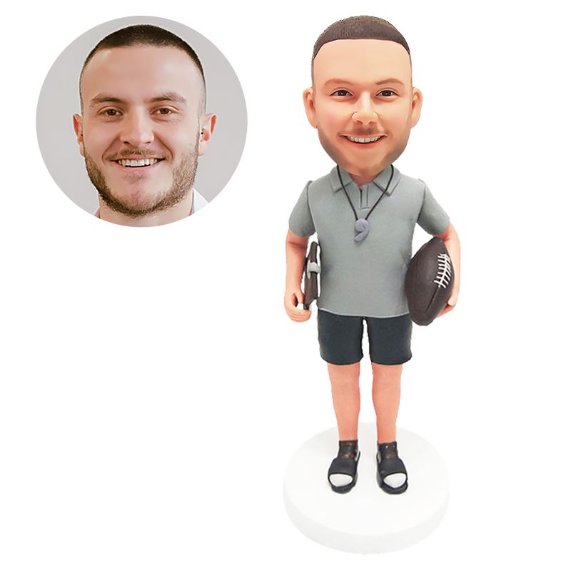 custom made bobble head sport fan figure male football coach with a whistle