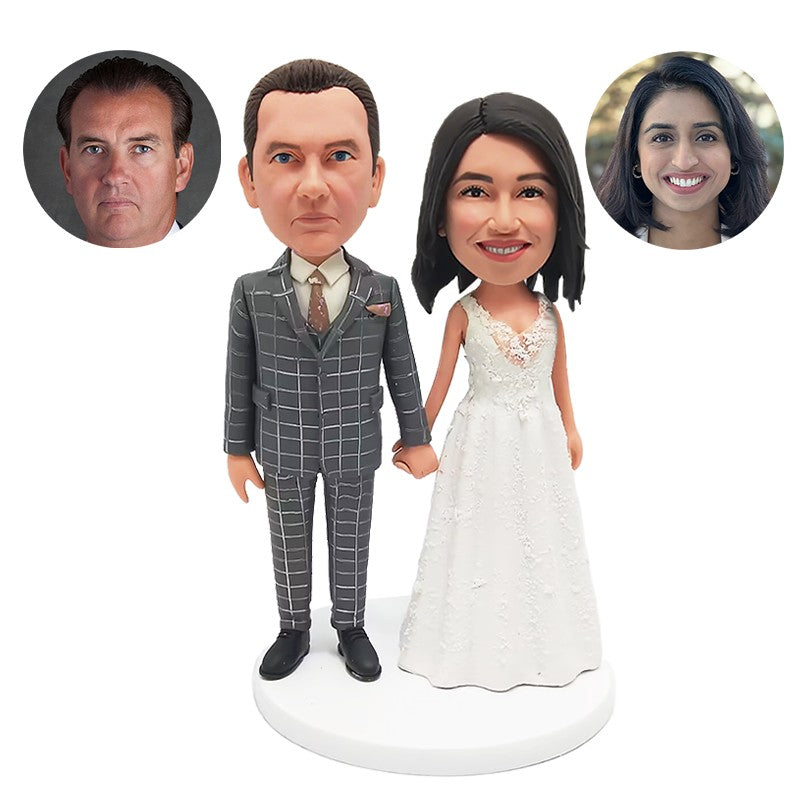 custom made bobbleheads figures couple holding hands wedding cake topper