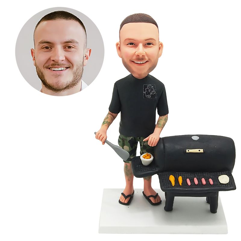 customised bbq bobblehead figure male chef holding the spatula to bake the food