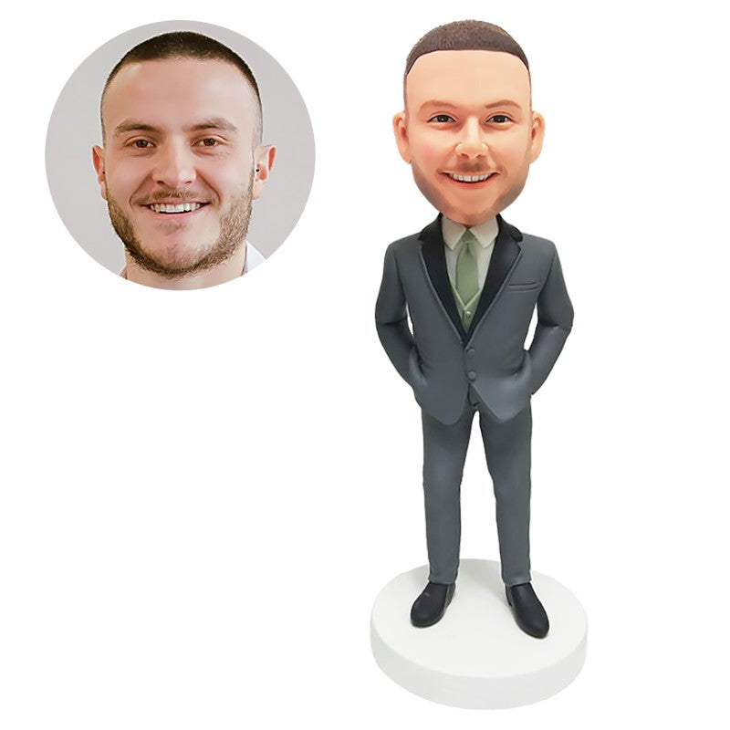 customized bobblehead figure groomsman with hands in the pockets