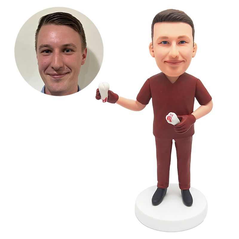 customized bobblehead figure male doctor holding models of teeth