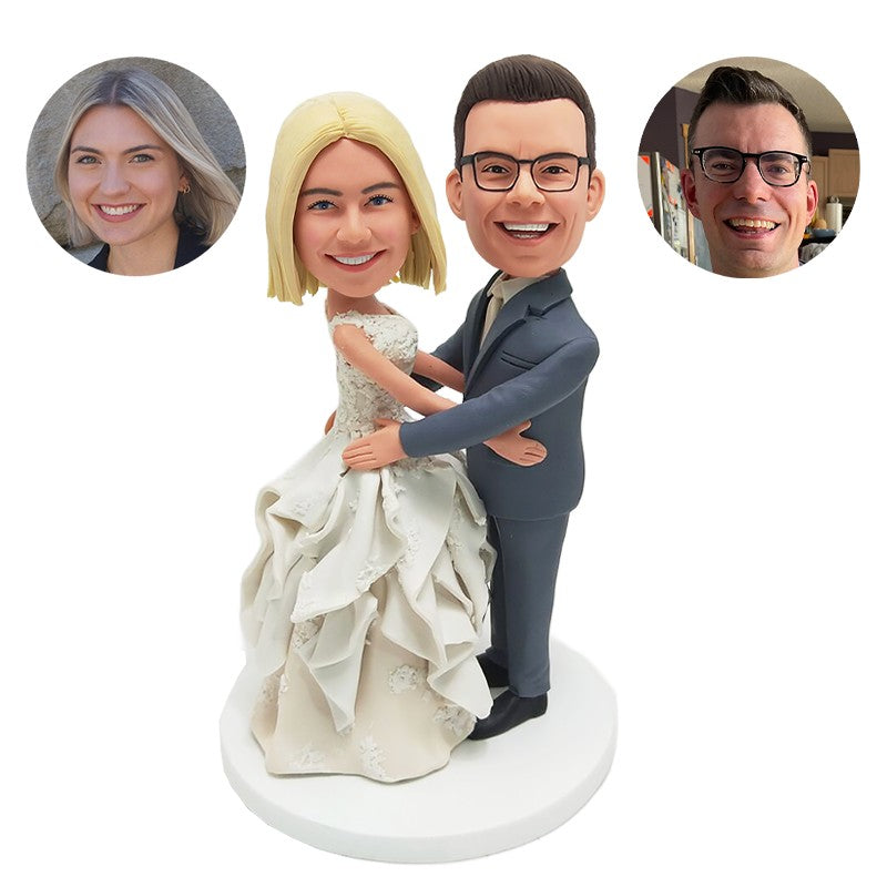 personalised bobble heads figures wedding embracing couple wedding cake topper