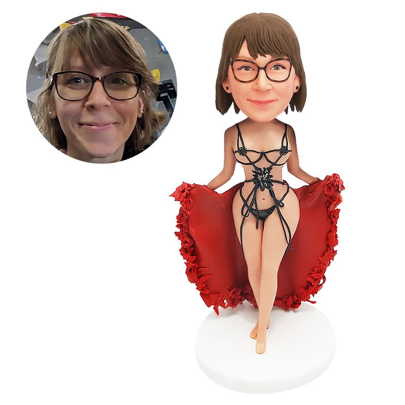 personalized bobble head figure sexy lady carrying the hem in both hands
