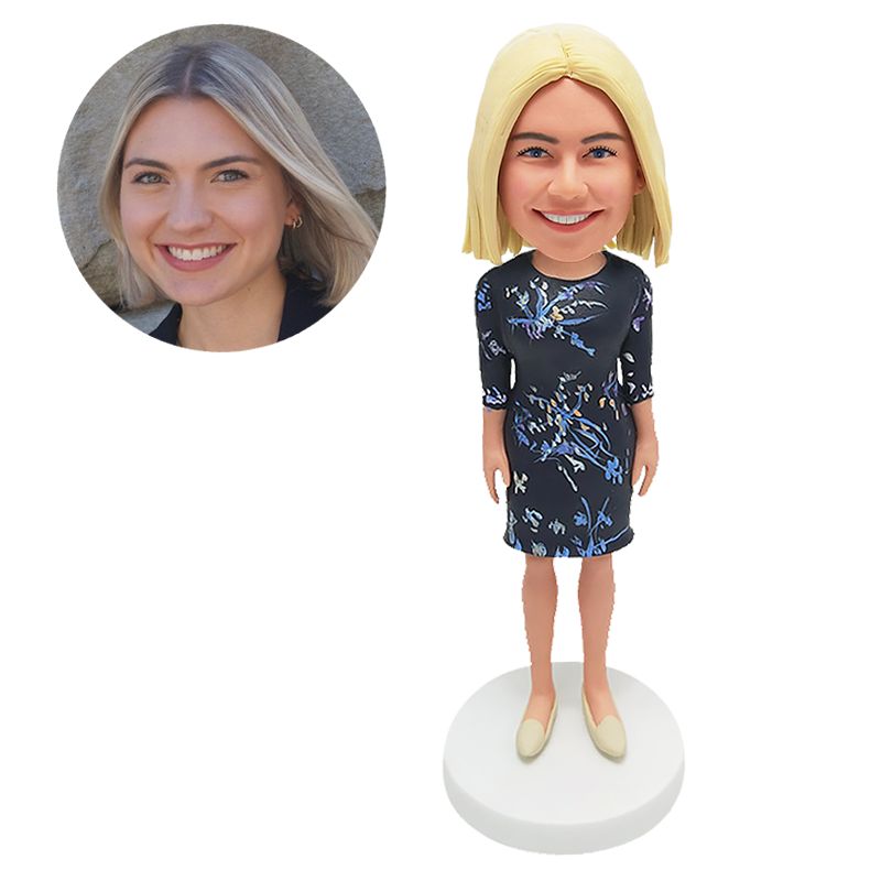personalized bobble head office lady business woman in floral dress