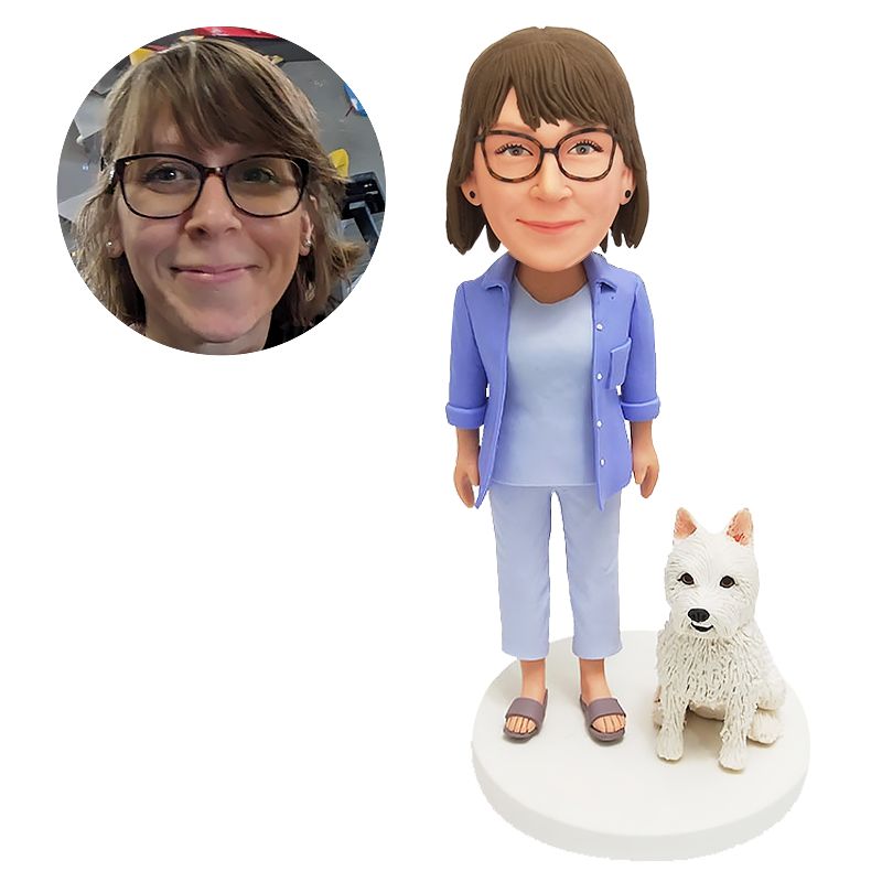 personalized bobblehead figure casual woman with a pet