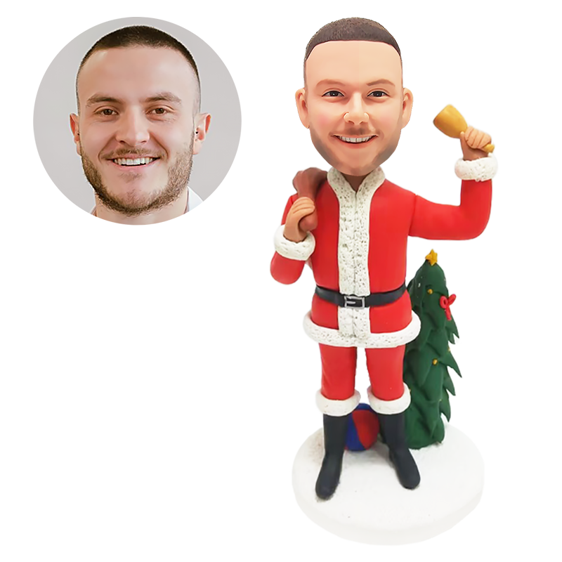 personalized bobblehead figure Christmas Santa holding a bag